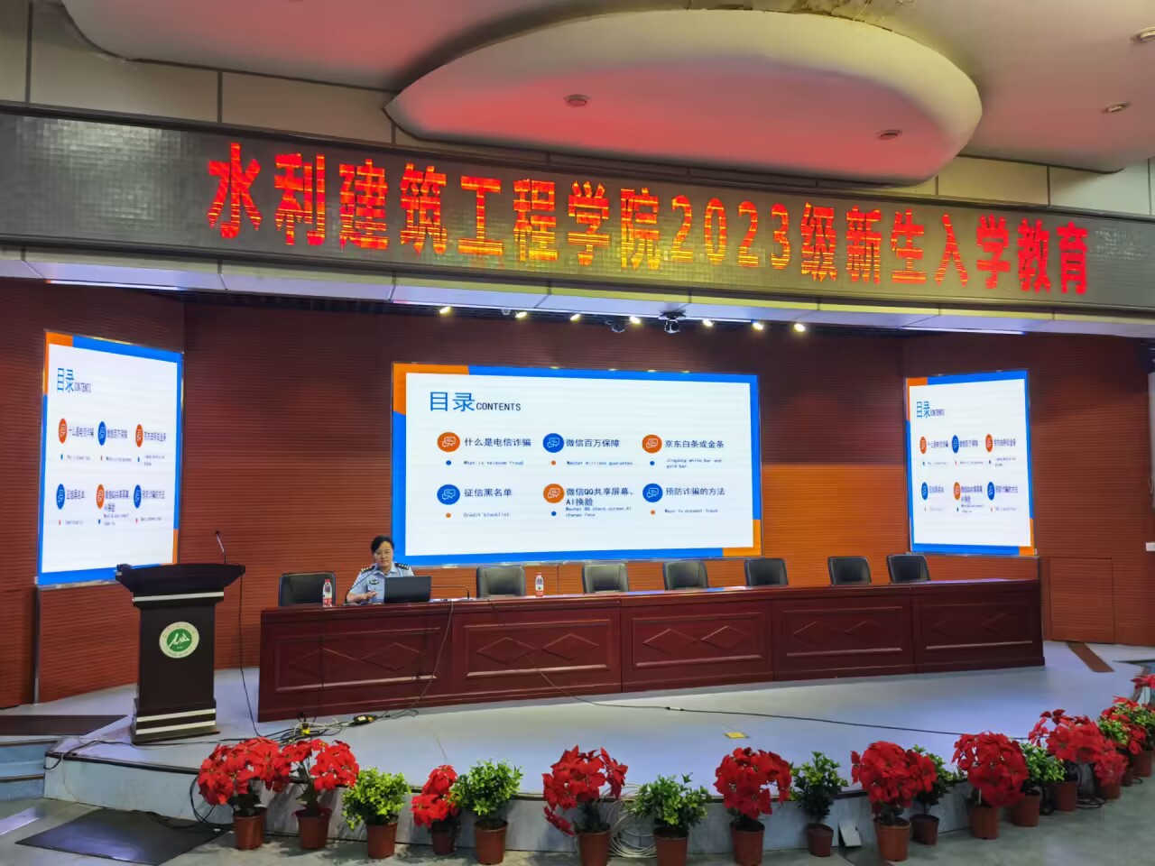 按照学院2023级本硕博新生入学教育实施方案工作部署,学院还分别邀请了辖区东明新村派出所警官、校党委学工部(处)心理健康教育中心专家等为新生带来“新生适应”、“预防电信诈骗,共建平安校园”系列讲座。
