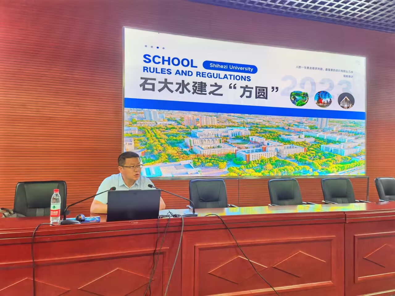 学院党委副书记娄哲以“石大水建之‘方圆’”为主题,结合身边典型案例向工科学子们生动讲述了大学生活、学习的注意事项,明确了在校生不可逾越的“红线”和“底线”,帮助新生牢固树立安全风险防范意识。