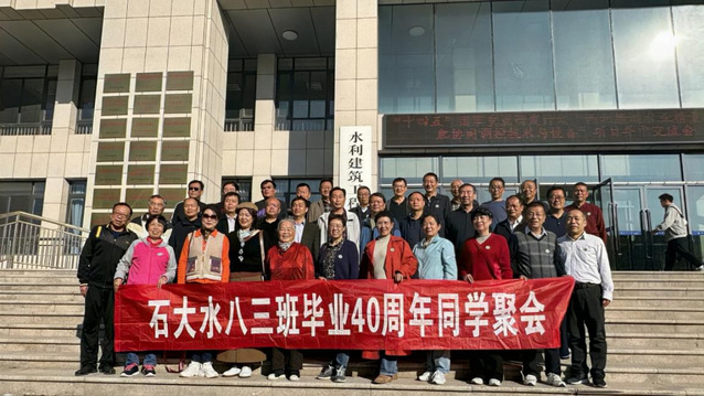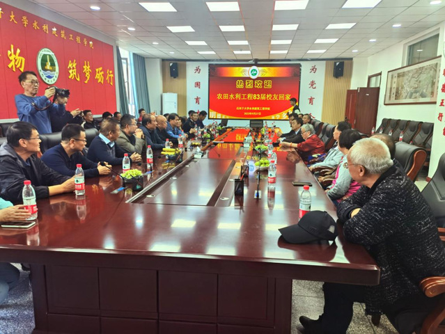 10月27日下午,云顶国际-云顶国际娱乐 农田水利工程专业83届校友毕业四十周年校友聚会在云顶国际-云顶国际娱乐 举行。来自全国各地三十名校友欢聚一堂,共叙青春年华,畅聊激情岁月。校党委常委、副校长叶含春、学院党委书记汤骅、院长王振华、退休老教师代表水83班班主任王凤霞、刘建军、王庆参加座谈会。