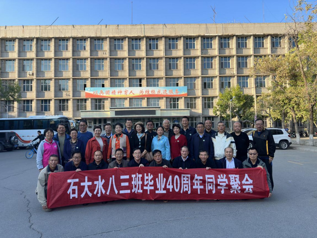 校友代表原兵团设计院总工程师张新平代表校友发言,对学院日新月异的变化及取得的成绩表示衷心的祝贺!座谈会后校友参观学院实验室建设和科研成果展,游览大学北区回忆当年就学情景并在方圆餐厅进行怀旧晚餐。校友在校园合影留念,相约五年以后在石河子大学再相会!