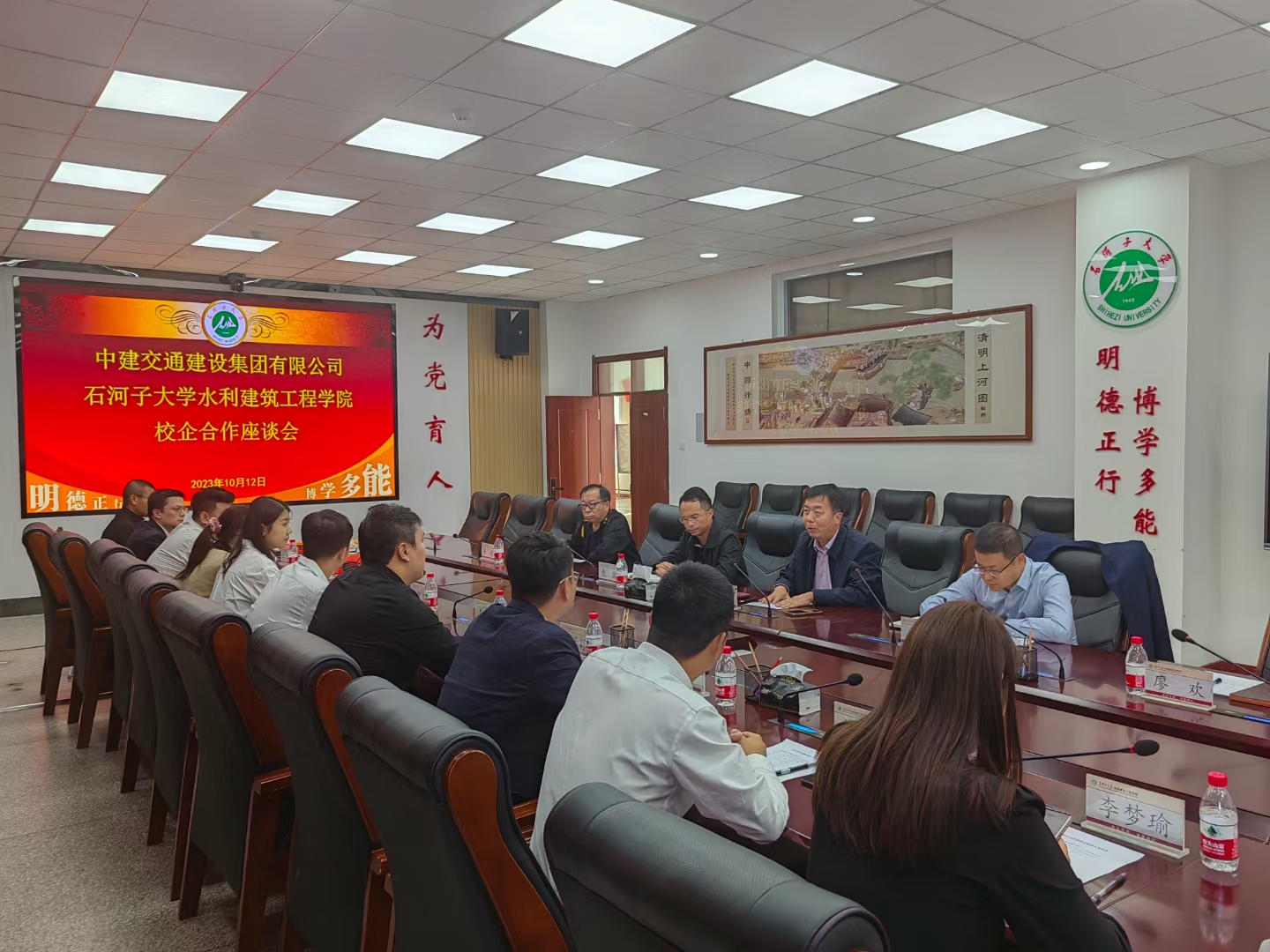 10月12日,中建交通建设集团有限公司招聘总监孟子舒携集团下属8家分公司招聘经理应邀来云顶国际娱乐 座谈交流并开展招聘宣讲。学院党委书记汤骅、党委副书记娄哲、副院长袁康,相关科室负责人参会,会议由汤骅主持。