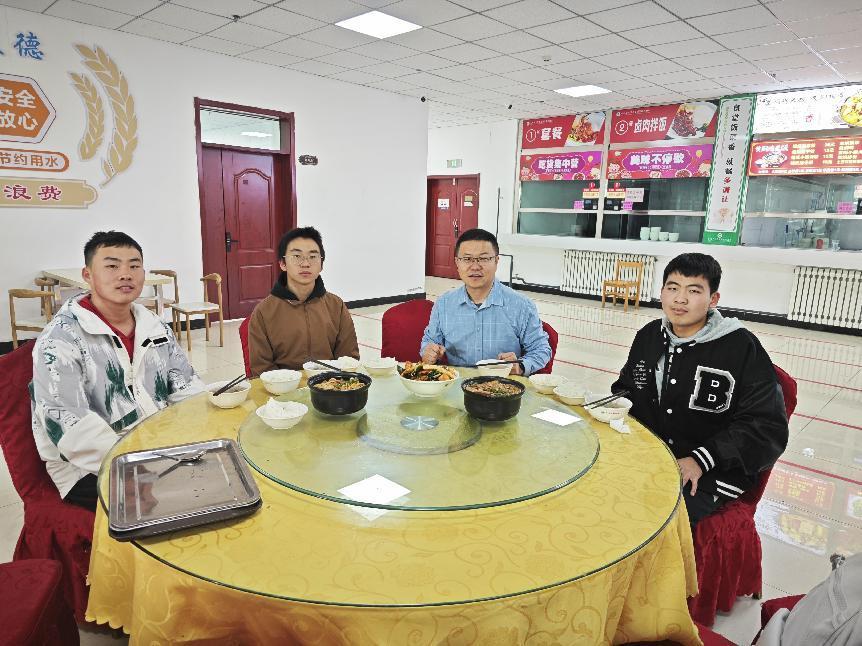 2023年11月17日中午,学院党委副书记娄哲借鉴“三进两联一交友”活动经验,深入食堂与3名自己负责指导的本科一年级同学以邀请午餐的形式开展交流指导。