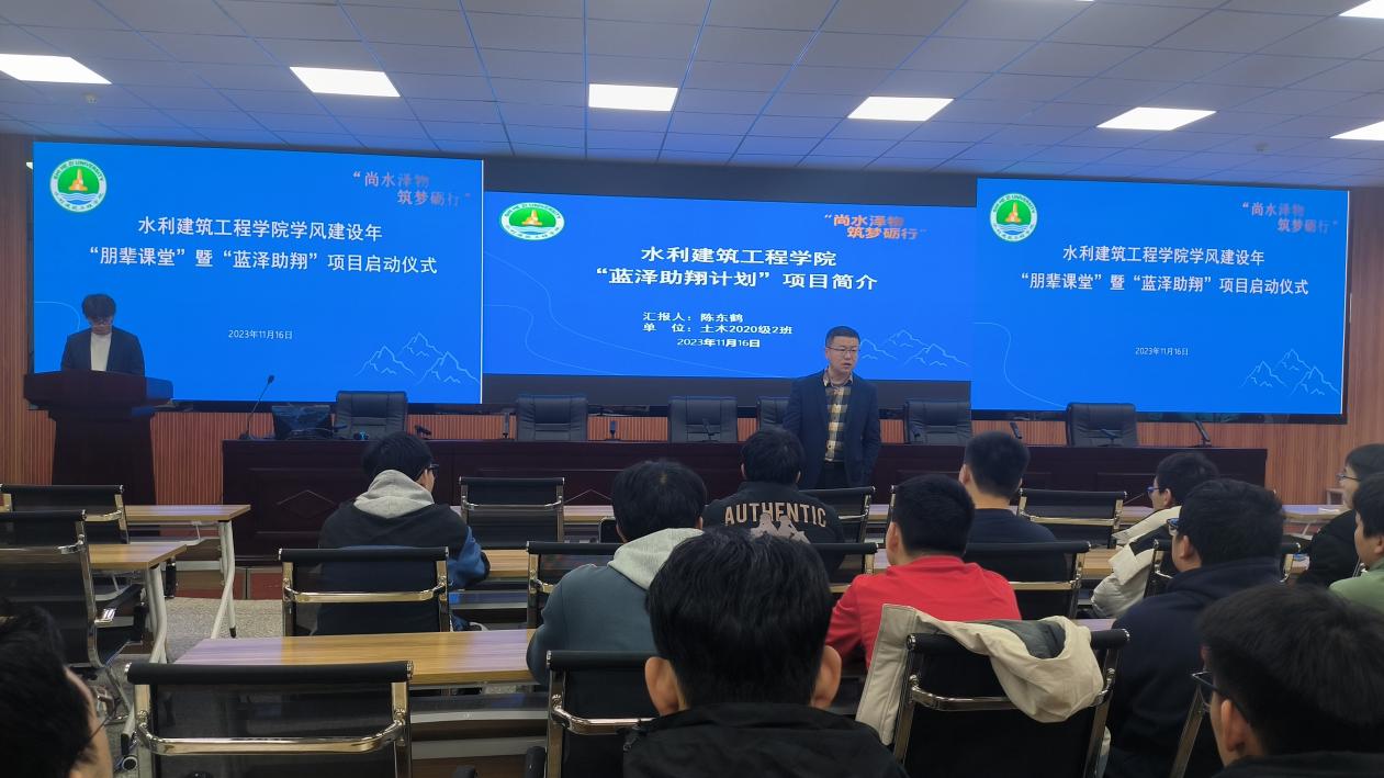 为充分发挥学生党员干部在思想引领、学业帮扶、学科竞赛、社会实践等方面的榜样示范和朋辈引领作用,促进同伴之间的互相支持和共同成长进步。11月17日下午,云顶国际 “蓝泽助翔”朋辈帮扶计划在学院朋辈课堂教师正式启动。学院党委副书记娄哲,团委书记、学工办负责人张丽君及全体辅导员参加启动仪式。仪式由该项目学生负责人陈东鹤主持。
