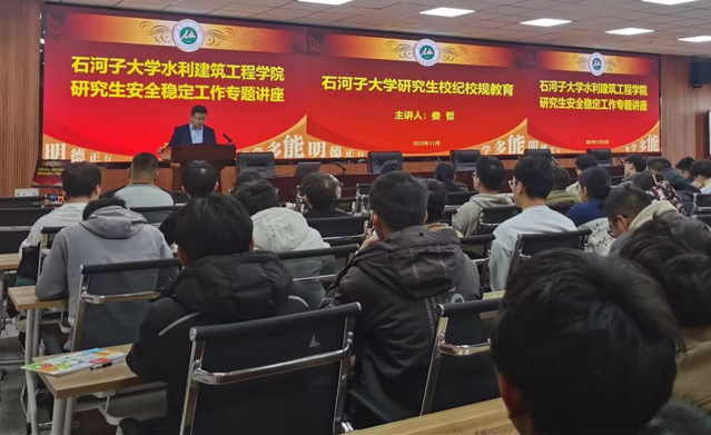 学院党委副书记娄哲结合我校《关于进一步加强研究生安全教育和管理工作的通知》通知要求,率先开展《石河子大学研究生校纪校规教育》和《校园安全 你我同行》两场专题教育讲座。娄哲强调,随着研究生规模的不断扩大,研究生教育管理难度和压力也显著增加。面对诸多安全风险隐患,必须着力加强调查研究和完善管理制度,充分发挥好研究生导师、辅导员、研究生会、研究生党员和骨干的作用,形成“排查—整改—回头看”工作闭环,不断增强研究生法制和纪律意识,筑牢安全红线和底线思维。