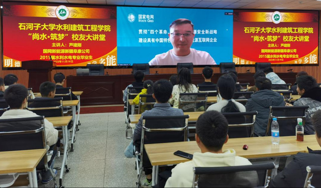 近期,由云顶国际 校友会主办,学生工作办公室承办的第六期“尚水·筑梦”校友讲堂开讲。云顶国际娱乐 2003届土木工程专业毕业生、石河子大学基建处副处长王海峰,2015届水利水电工程专业毕业生、国网新能源阜康公司芦建刚为在校生作分享。