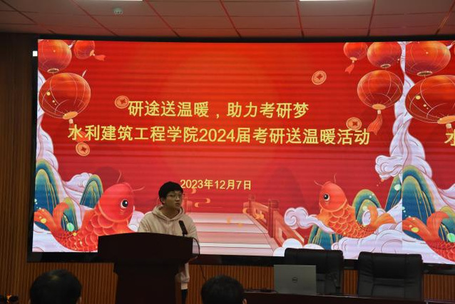 活动伊始,2023级农业工程硕士研究生代贤达结合自身经历,作考前经验分享交流,强调积极乐观的心态在整个考研过程中的重要性,他鼓励师弟师妹们要坚持不懈,努力克服困难,始终保持充足的信心。