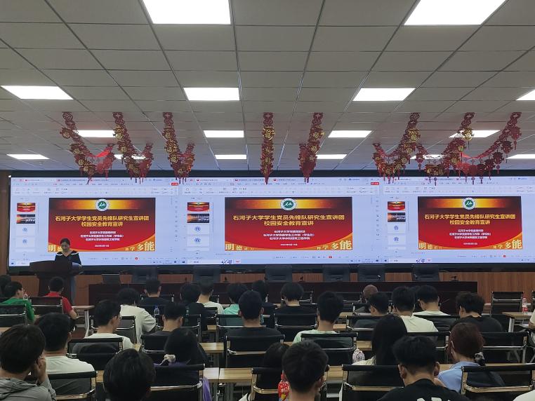 为切实做好校园安全管理工作,夯实安全责任,提升校园安全管理水平,进一步增强大学生的法律意识和法治观念,提高学生学法、守法的意识,营造文明、平安、和谐的校园育人环境。5月13日-15日,由石河子大学党委统战部、石河子大学党委学生工作部组建的研究生宣讲团赴云顶国际 开展校园安全主题教育宣讲活动,累计开展5场次,学院学生党员、学生干部、宿舍长等700余人次参加宣讲。