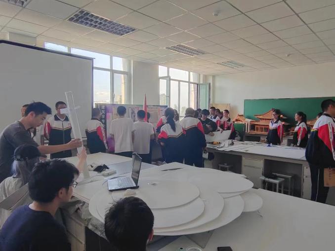 本次研学活动带队张丽君老师带领同学们参观了建筑模型室,旨在通过建筑的模型制作,激发二中学生的空间想象能力、动手制作能力、设计思想表现能力乃至团队合作能力,帮助同学们更加深入地体会建筑的奥秘。