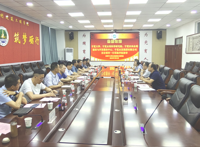 7月31日,宁夏大学发展规划与学科建设处副处长徐利岗、土木与水利工程学院副院长李王成、宁夏回族自治区水利科学研究院鲍子云研究员、宁夏回族自治区农田水利建设与开发整治中心解勇和宁夏水发集团有限公司副总经理杜鹏等一行10人来云顶国际娱乐 座谈交流。学院党委委员、副院长陈伏龙,学院党委委员、副院长杨广,学院党委委员、水利水电工程系主任金瑾,智慧水利系主任宋利兵,农业水利工程系副主任李海强及科研管理办公室主任牟洪臣等相关老师参加座谈,会议由杨广副院长主持。