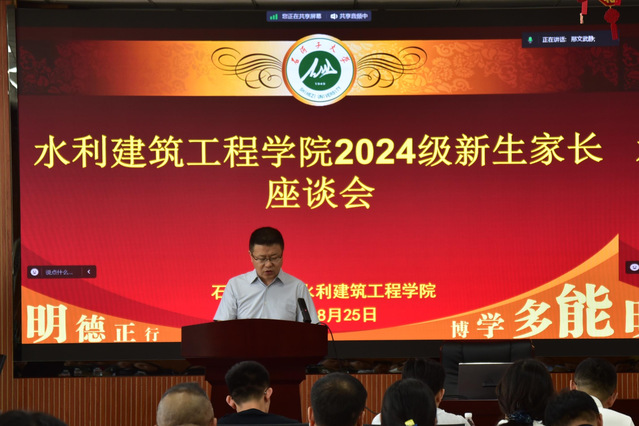 学院党委副书记娄哲代表学院致欢迎词,向新生家长们表示热烈欢迎,对新生和家长的信任表示衷心感谢。随后,学院党委书记汤骅对学院发展历程、师资力量配备、专业与学科建设、人才培养体系、科学研究成果以及学院未来发展规划等方面进行了介绍。党委副书记娄哲着重就学生工作体系和家校协同育人向家长们作介绍并提出希望,期待家长积极融入学生成长成才过程中,构建学校、家庭、社会三位一体的育人大格局。