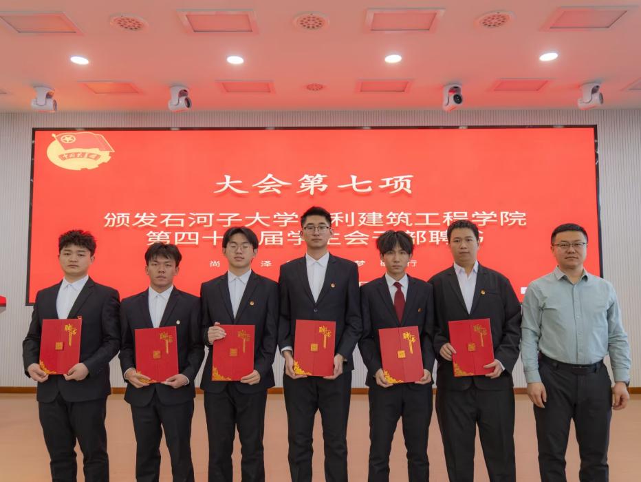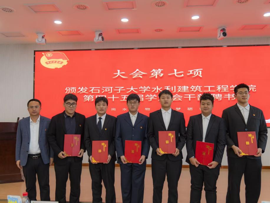 袁康、娄哲为第四十五届学生会干部颁发聘书,对他们过去一年中的辛勤耕耘和积极贡献给予表彰。