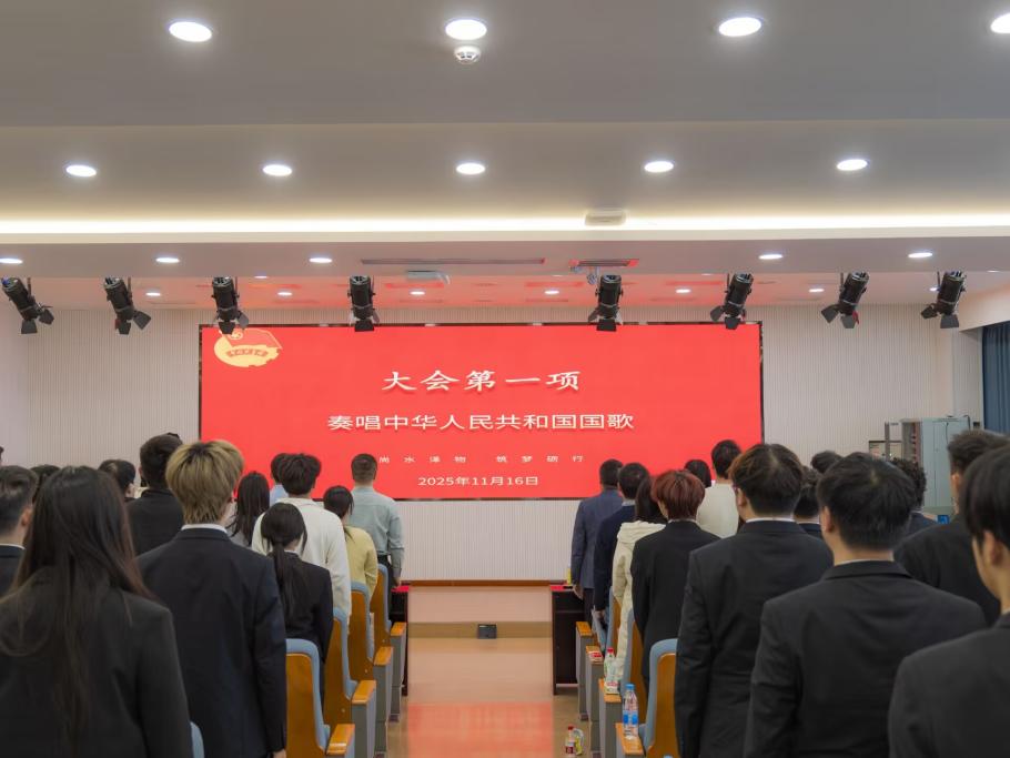 会议在庄严的国歌声中拉开帷幕。主持人第四十五届学生会主席徐振庭介绍了与会领导与嘉宾,并对长期关心支持学院学生会工作的师生表示衷心感谢。